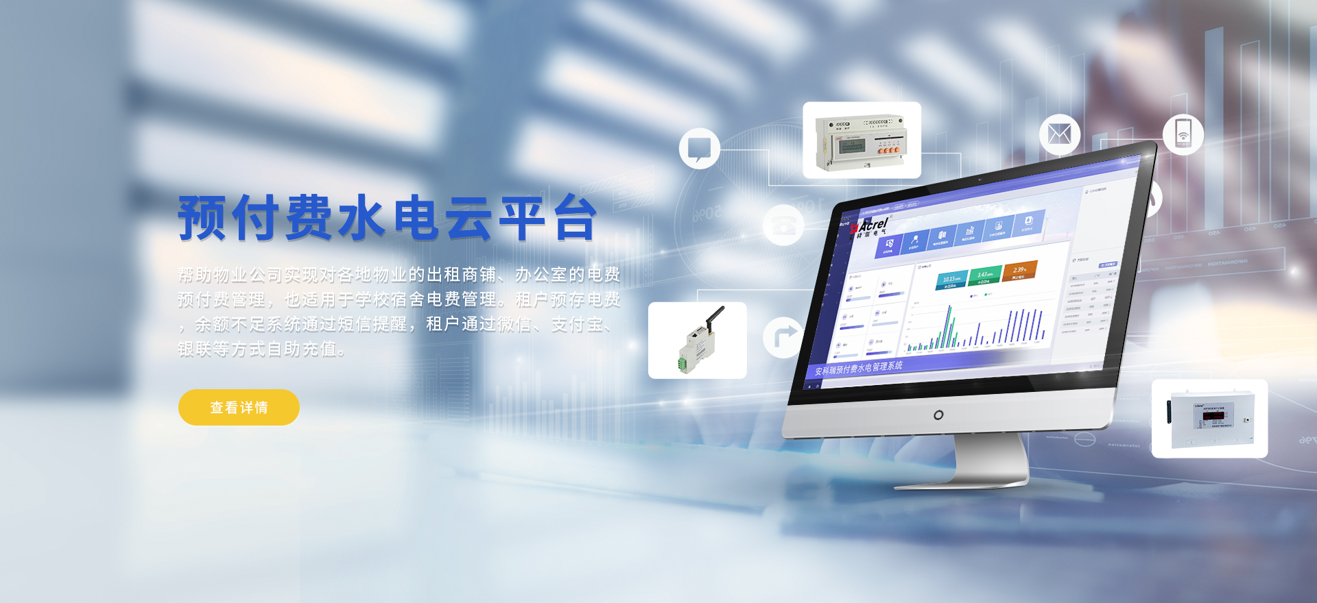 安科瑞提供的解決方案包括Acrel-EIoT能源物聯網云平臺、變電所運維云平臺安全用電管理云平臺環保用電監管云平臺、智慧消防云平臺、能源管理云平臺、工業企業能源管控平臺、遠程預付費云平臺、餐飲油煙監管云平臺、電動汽車/電瓶車充電樁收費管理云平臺、電力監控/無線測溫系統、電能質量治理系統、電氣火災監控系統消防設備電源監控系統、防火門監控系統、應急照明和疏散指示系統、智能照明控制系統、醫用隔離電源絕緣監測系統等,幫助用戶實現能源智能化、可視化、精細化管理,提高用能效率和用能安全,為企業節能降耗和實現能源數字化建設提供數據服務。